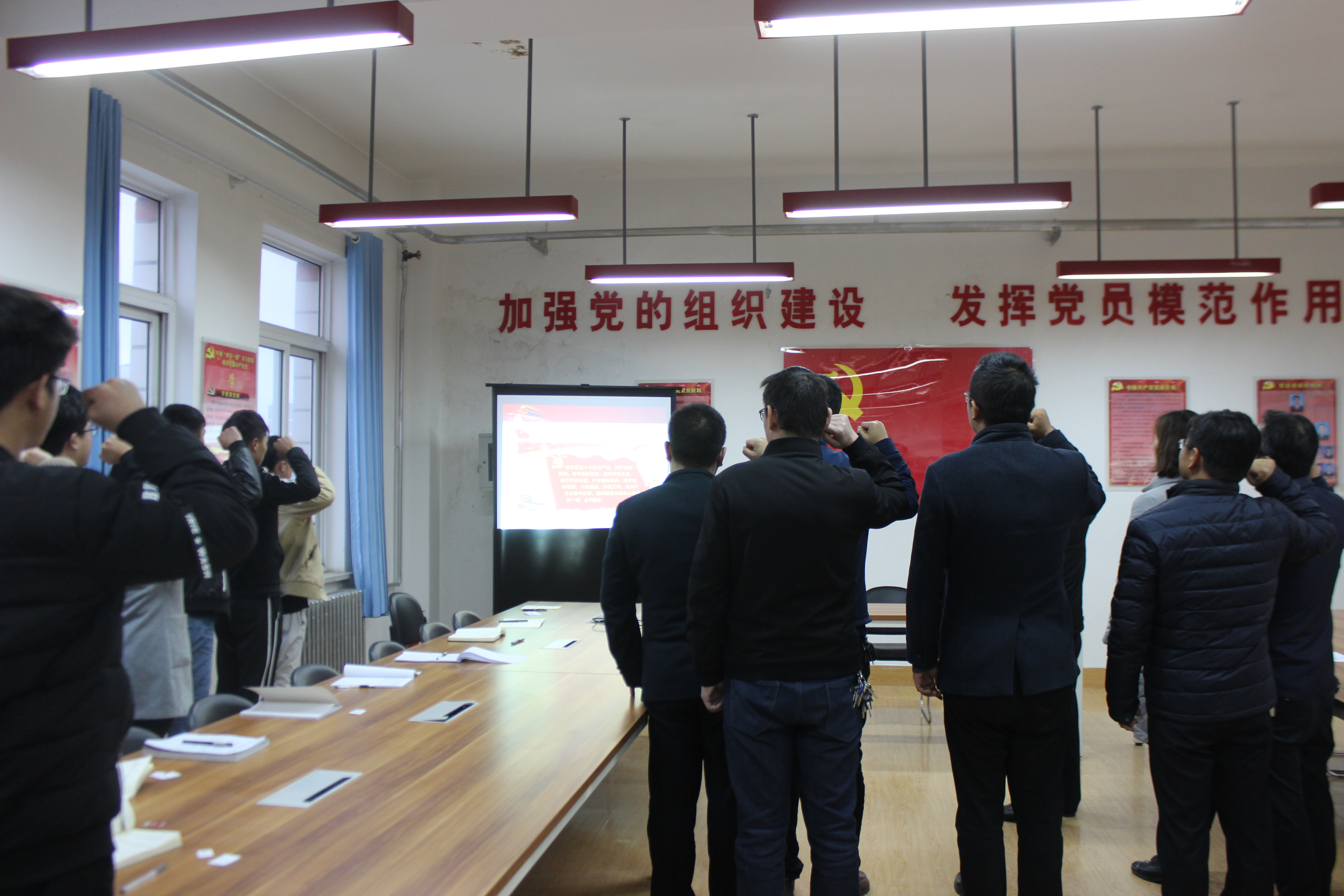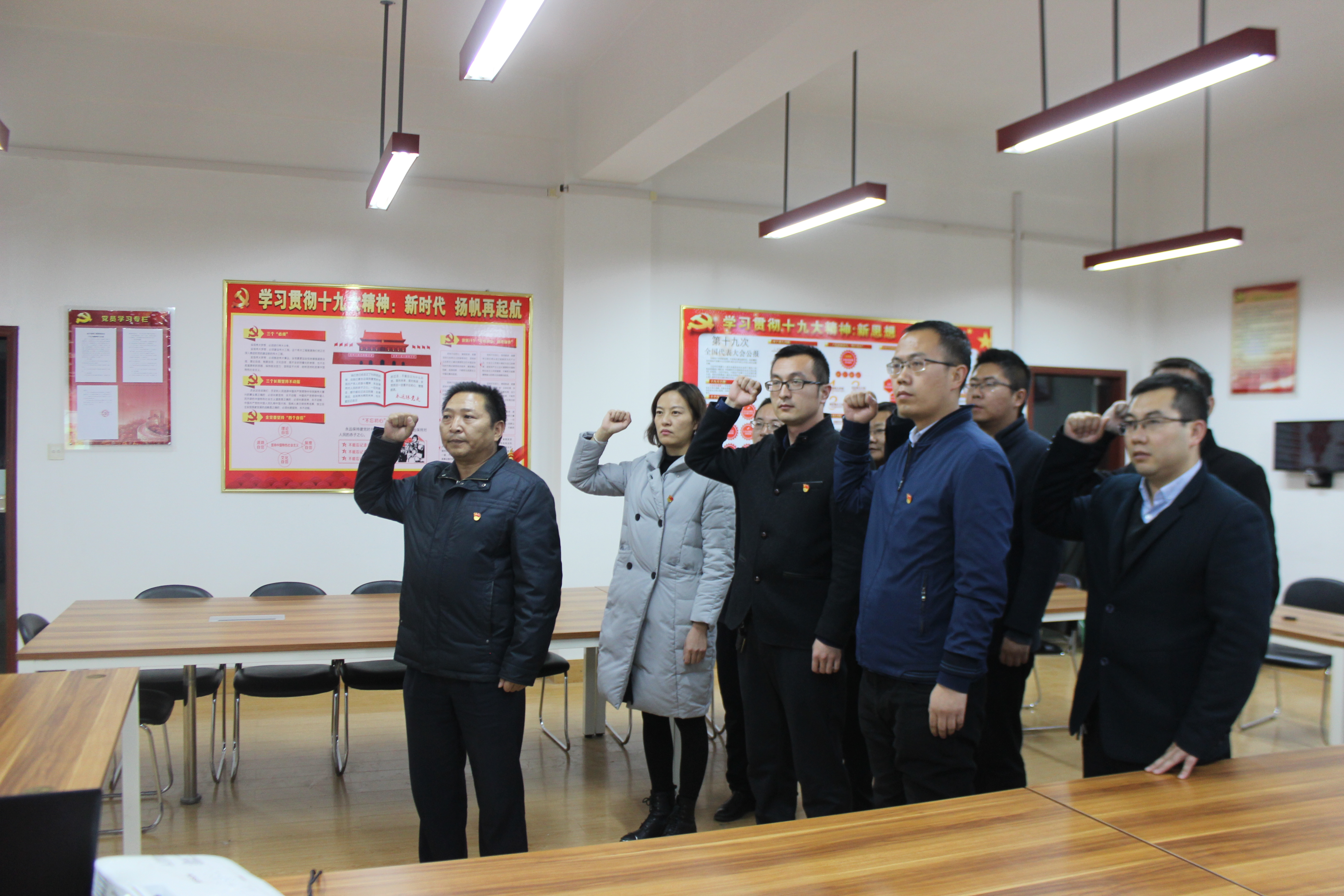 11月30日下午,電子信息工程系黨總支在尚德樓五樓黨員活動(dòng)室開展以“重溫入黨誓詞、不忘初心牢記使命”為主題的主題黨日活動(dòng),系黨總支全體黨員參加活動(dòng)。本次主題黨日活動(dòng)旨在深入學(xué)習(xí)貫徹十九大精神,引導(dǎo)全系黨員始終牢記、堅(jiān)決踐行入黨誓詞,不忘初心、牢記使命,以習(xí)近平新時(shí)代中國(guó)特色社會(huì)主義思想為指導(dǎo),堅(jiān)定理想信念,為推進(jìn)全系各項(xiàng)事業(yè)不懈奮斗。