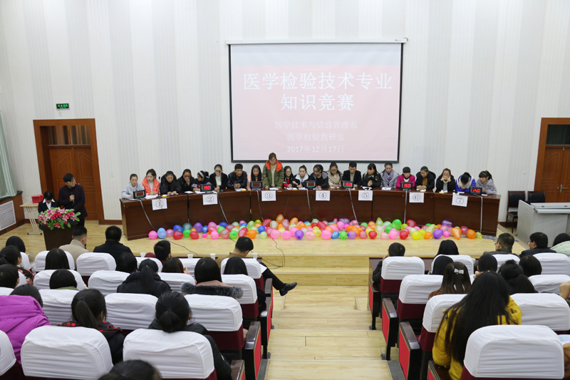 為營造良好學風,活躍校園文化生活,提高學生對專業(yè)知識、專業(yè)技能的學習興趣,推進醫(yī)學檢驗技術專業(yè)的建設。醫(yī)學檢驗教研室于12月17日晚在尚德樓正德廳舉辦了醫(yī)學檢驗技術專業(yè)知識競賽,有2016級、2017級醫(yī)學檢驗技術專業(yè)21名同學參加了此次競賽。