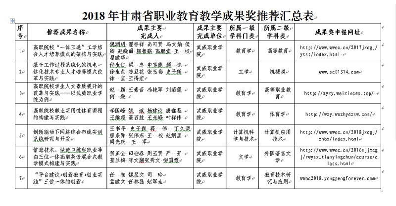 關于學院擬推薦2018年甘肅省職業(yè)教育教學成果獎評選的公示