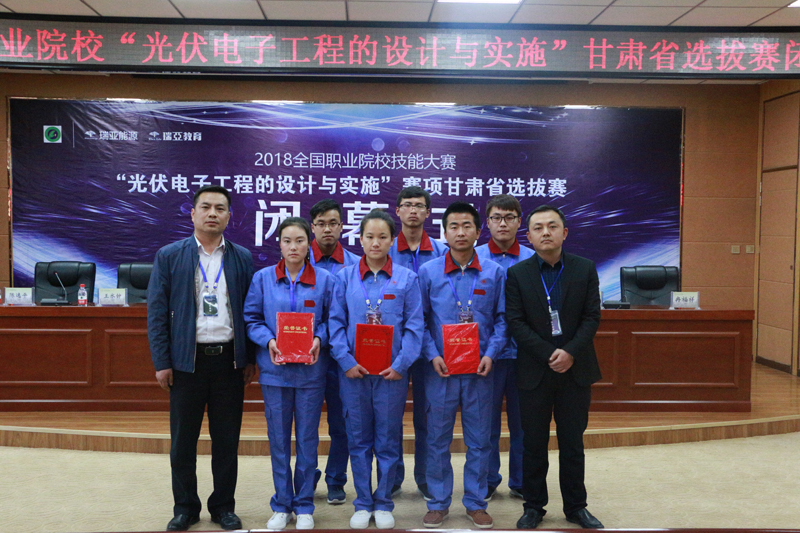 4月14日,2018年全國(guó)職業(yè)院校技能大賽“光伏電子工程的設(shè)計(jì)與實(shí)施”賽項(xiàng)甘肅省選拔賽在甘肅林業(yè)職業(yè)技術(shù)學(xué)院舉行。此次大賽有蘭州石化職業(yè)技術(shù)學(xué)院、甘肅林業(yè)職業(yè)技術(shù)學(xué)院、武威職業(yè)學(xué)院等6所院校的11支代表隊(duì)33名選手參加。由我院能源工程系黃述杰、張國(guó)祥老師指導(dǎo),田丹、馬亞飛、陳雪花三名學(xué)生組成的武威職業(yè)學(xué)院一隊(duì)榮獲二等獎(jiǎng)。