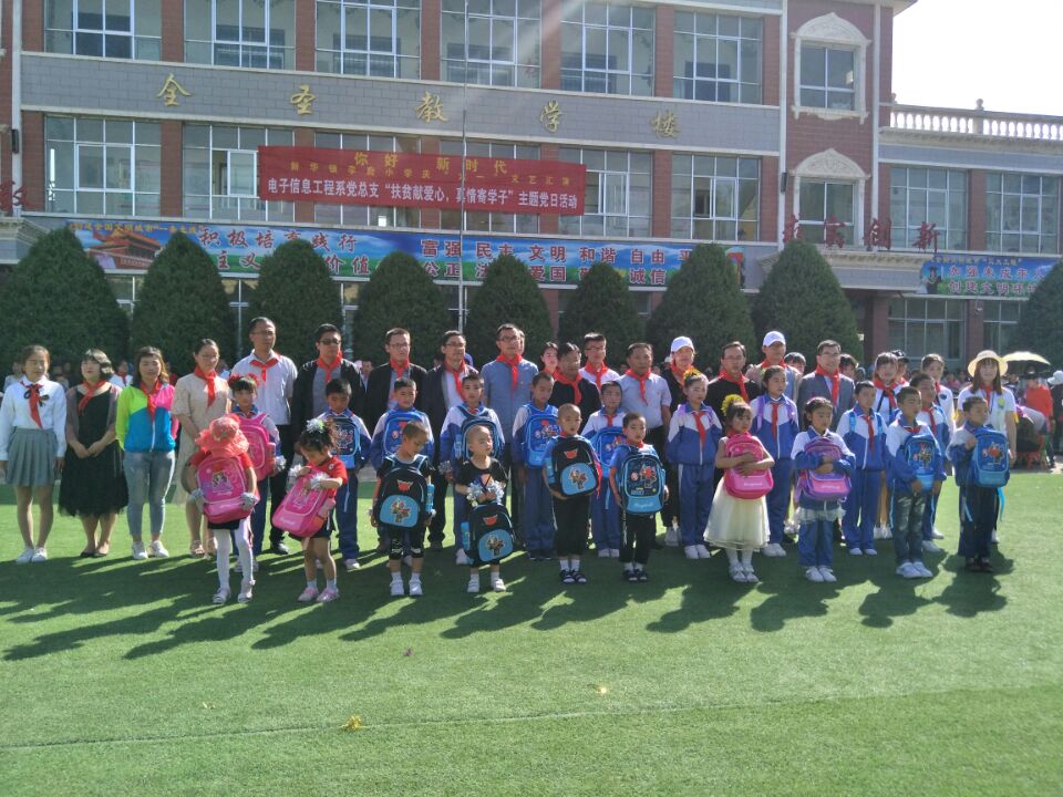 5月31日8點,電子信息工程系黨總支全體黨員和學(xué)生入黨積極分子赴涼州區(qū)新華鎮(zhèn)李府小學(xué)開展“扶貧獻愛心,真情寄學(xué)子”主題黨日活動,為精準(zhǔn)扶貧建檔立卡學(xué)生送去了學(xué)習(xí)、生活用品,與孩子們共同度過了一個快樂、祥和的六一國際兒童節(jié)。