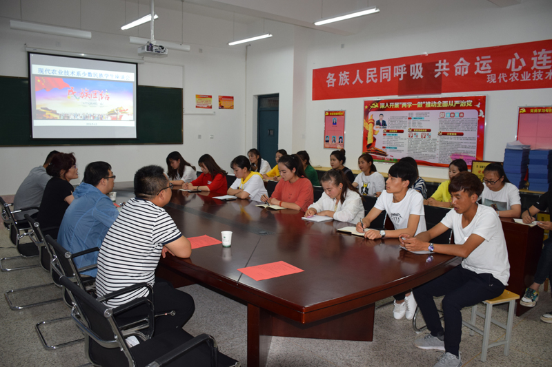 ???? 為認(rèn)真貫徹落實(shí)《學(xué)院第15個(gè)民族團(tuán)結(jié)進(jìn)步宣傳月活動(dòng)實(shí)施方案》,6月12日,現(xiàn)代農(nóng)業(yè)技術(shù)系在行樹(shù)樓教學(xué)區(qū)309會(huì)議室開(kāi)展民族團(tuán)結(jié)月系列活動(dòng)。系黨總支書(shū)記晏素珍、龔建軍、蔡飛老師及全系少數(shù)民族學(xué)生參加會(huì)議,會(huì)議由系輔導(dǎo)員蔡海老師主持。