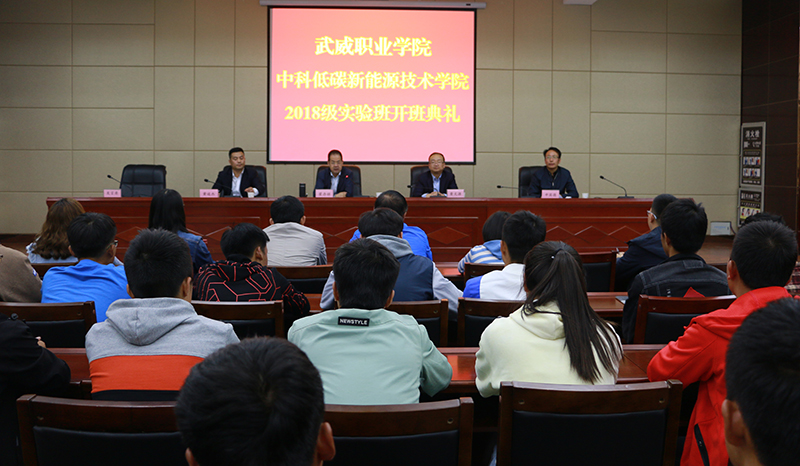 9月17日晚,武威職業(yè)學(xué)院中科低碳新能源技術(shù)學(xué)院2018級“實驗班”開班典禮在學(xué)院行樹樓北側(cè)報告廳隆重舉行。學(xué)院副院長翟存祥、能源工程系黨總支書記黃文源、能源工程系副主任黃述杰、機(jī)械工程系副主任申賓德、實驗班全體任課教師和同學(xué)參加了開班典禮。典禮由能源工程系副主任黃述杰主持。