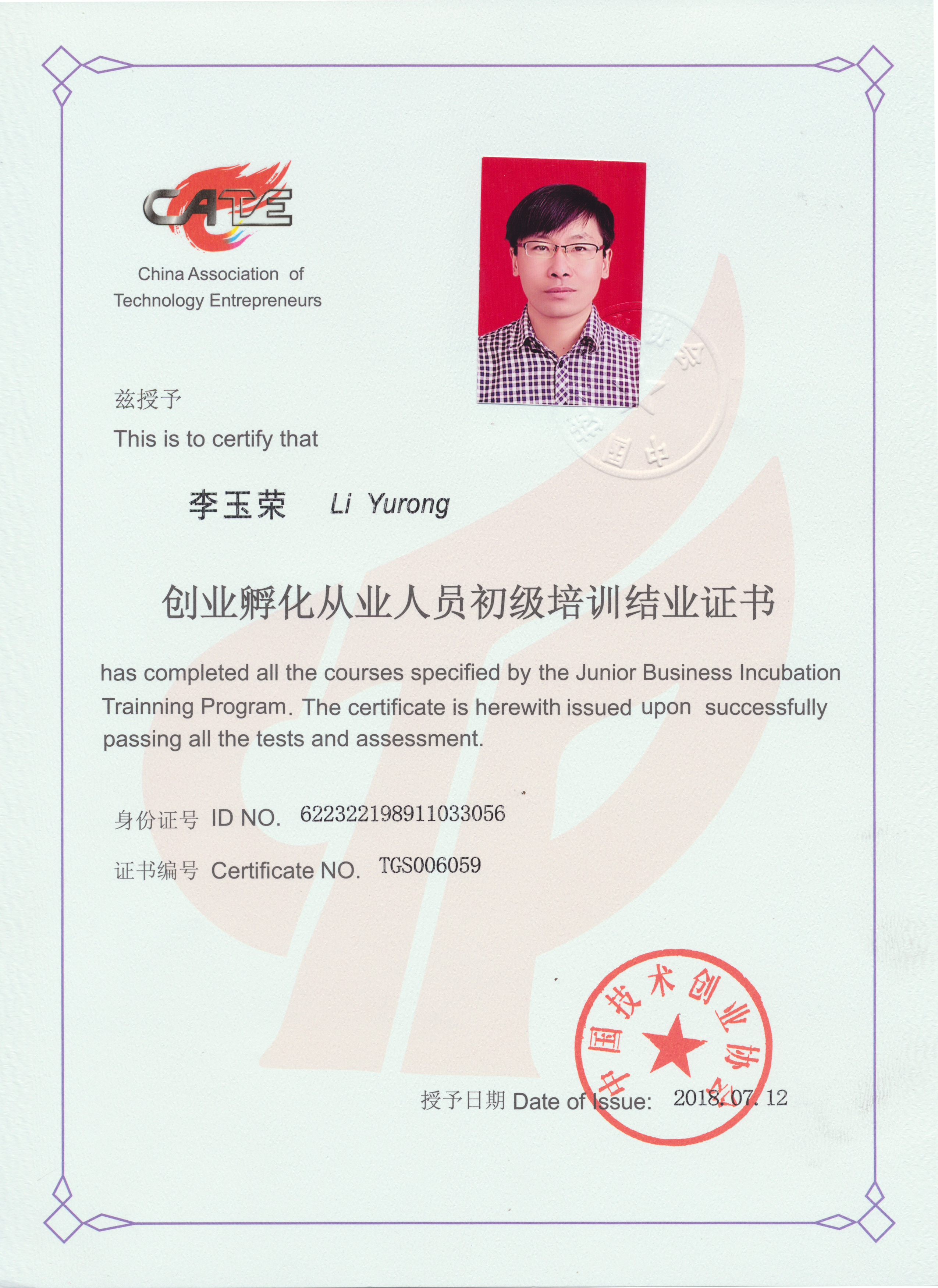 創(chuàng)業(yè)孵化從業(yè)培訓(xùn)結(jié)業(yè)證書(shū)
