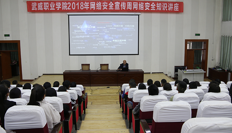 為深入學習宣傳貫徹習近平總書記在全國網絡安全和信息化工作會議上“深入開展網絡安全知識技能宣傳普及,提高廣大人民群眾網絡安全意識和防護技能”的重要講話精神,按照甘肅省教育廳、武威市網信辦關于開展2018年國家網絡安全宣傳周活動的要求。9月18日下午,學院在正德廳舉辦了“網絡安全與《網絡安全法》”的專題講座,師生代表200余人參加。