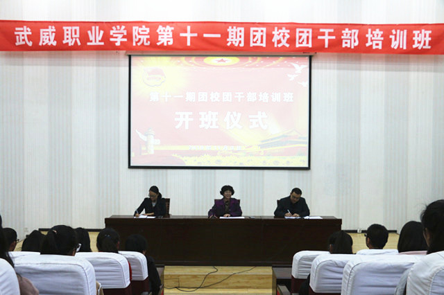 11月3日下午,武威職業(yè)學院第十一期團校團干部培訓班開班儀式在尚德樓正德廳舉行。學院副院長潘玉華出席開班儀式,各系團總支書記和269名團干部參加。