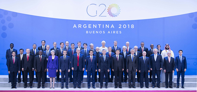 當(dāng)?shù)貢r間11月30日,二十國集團(tuán)領(lǐng)導(dǎo)人第十三次峰會在阿根廷布宜諾斯艾利斯舉行。國家主席習(xí)近平出席第一階段會議并發(fā)表題為《登高望遠(yuǎn),牢牢把握世界經(jīng)濟(jì)正確方向》的重要講話。這是習(xí)近平同其他與會領(lǐng)導(dǎo)人合影。 新華社記者 李濤 攝