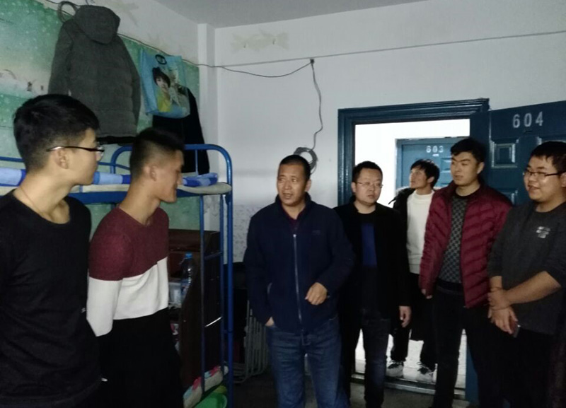 會后,黨總支書記梁忠?guī)ьI(lǐng)全體班主任及輔導(dǎo)員深入宿舍,對宿舍衛(wèi)生及寢室文化建設(shè)進行了檢查與指導(dǎo),并與同學(xué)們進行了親切的交流。
