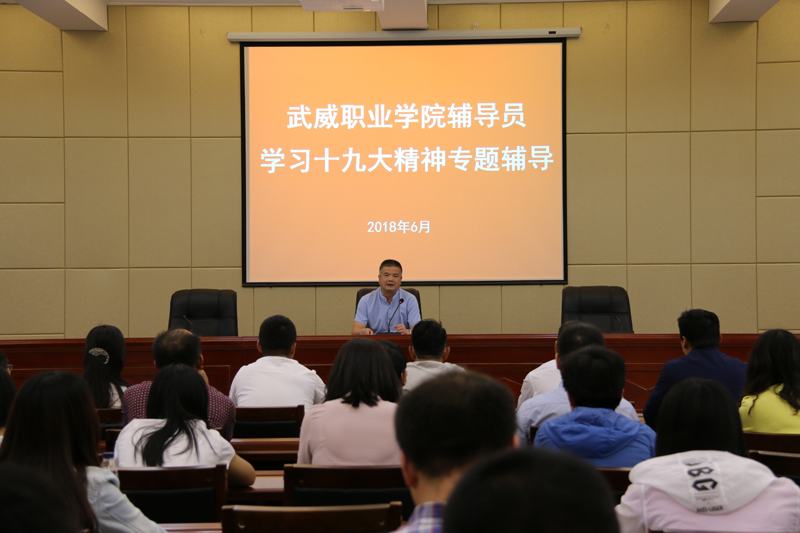 為學(xué)習(xí)貫徹十九大精神和習(xí)近平新時(shí)代中國特色社會(huì)主義思想,我院于6月4日下午在行樹樓學(xué)術(shù)報(bào)告廳組織召開學(xué)習(xí)十九大精神專題輔導(dǎo)會(huì)。各系輔導(dǎo)員、班主任、團(tuán)干部以及學(xué)工干部50余人參加輔導(dǎo)會(huì)。學(xué)生工作處處長王守云做了“不忘初心、牢記使命,做新時(shí)代的‘四有’輔導(dǎo)員”專題輔導(dǎo)。