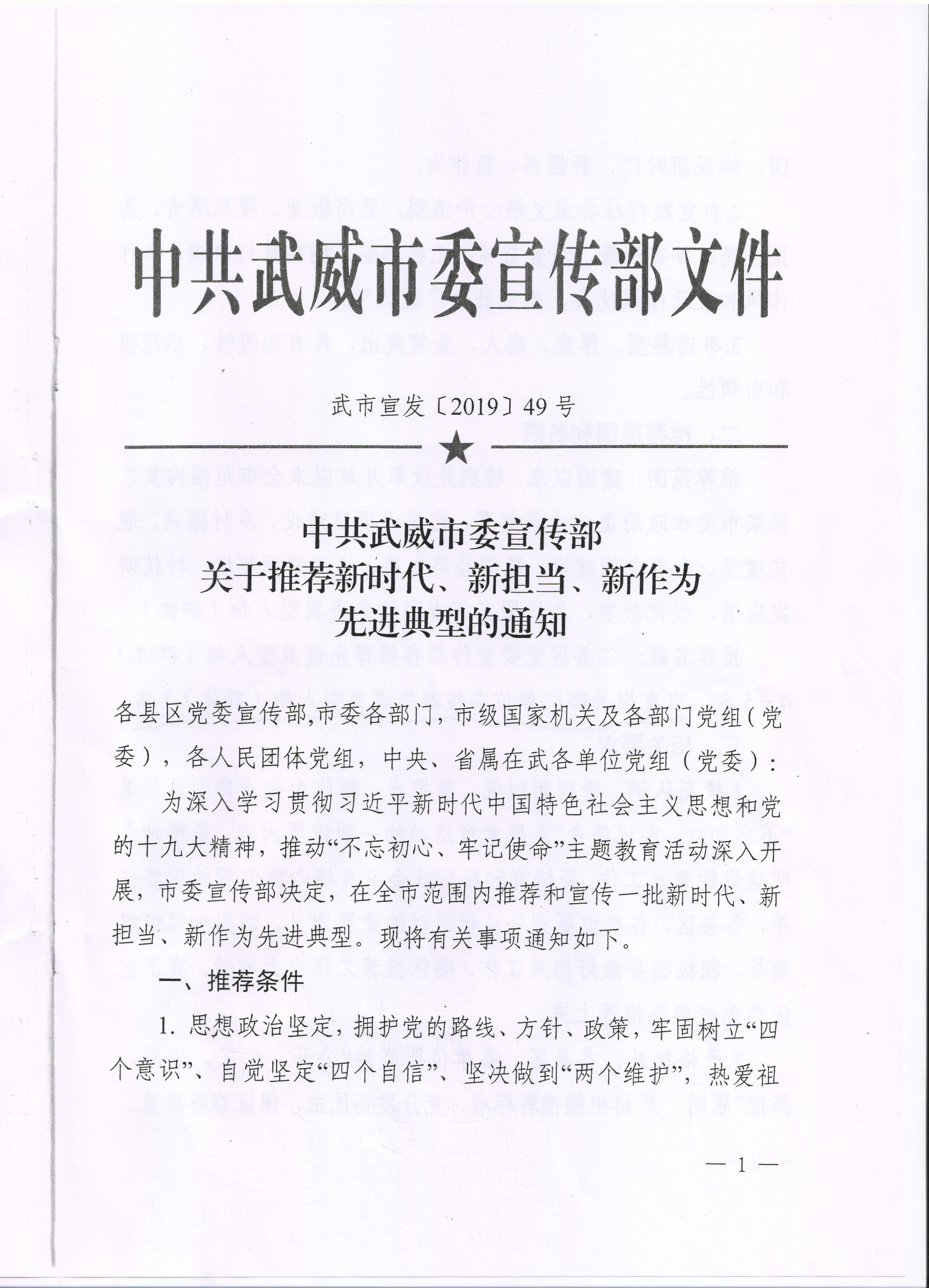 附件:《中共武威市委宣傳部關(guān)于推薦新時代、新?lián)?dāng)、新作為先進(jìn)典型的通知》
