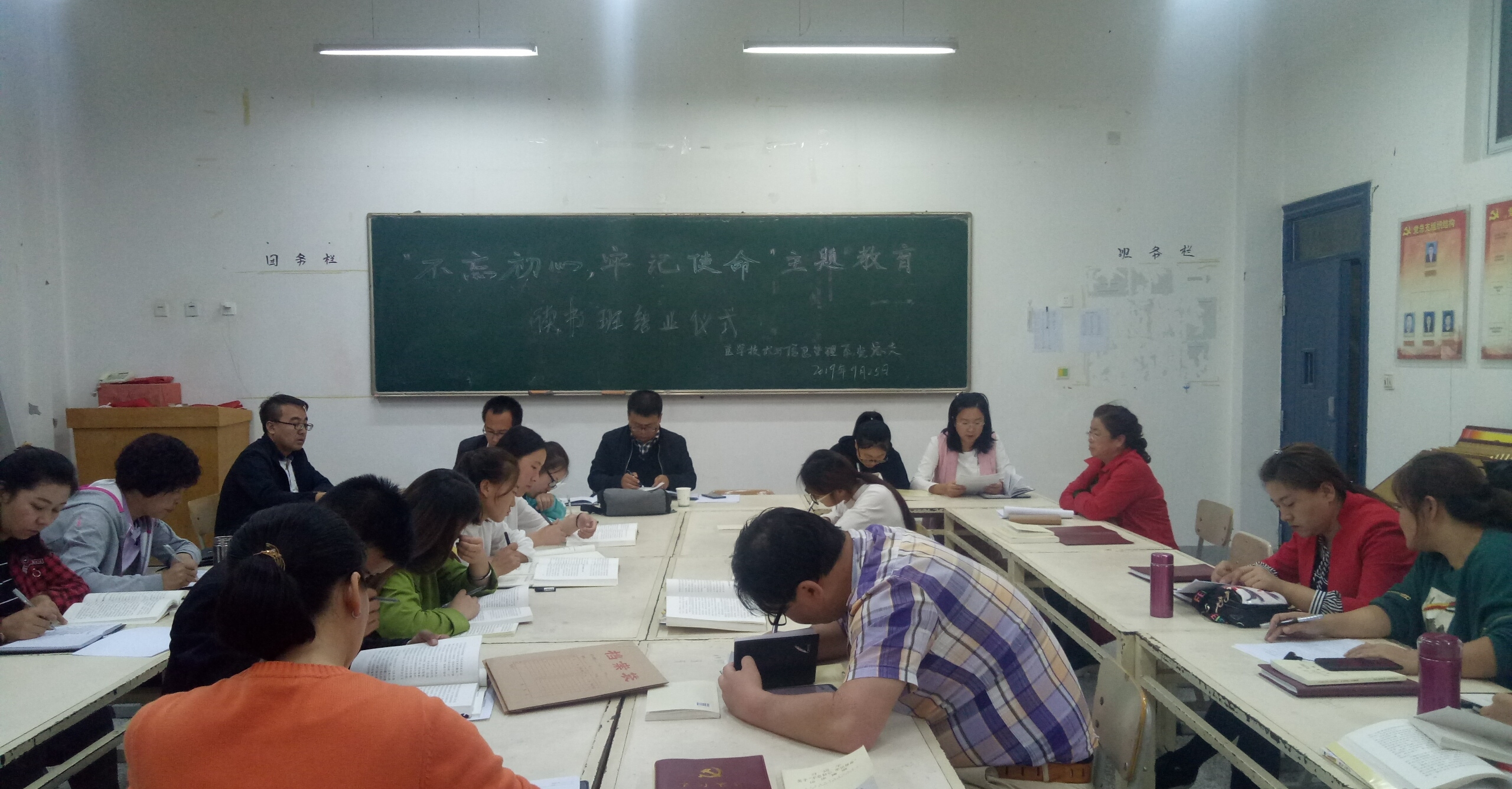 9月25日晚,醫(yī)學(xué)技術(shù)學(xué)院黨總支在明遠(yuǎn)樓416會議室召開“不忘初心、牢記使命”主題教育讀書班第四次交流研討會暨讀書班結(jié)業(yè)儀式。系全體黨員、非黨員教師及入黨積極分子參加了會議。系副主任蔡濟(jì)眾主持會議并做總結(jié)講話。