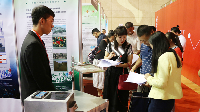 我院5件作品接受了評(píng)審專家的質(zhì)詢答辯,6件科技發(fā)明類作品參加了現(xiàn)場(chǎng)展示,獲得觀摩師生的關(guān)注和贊許。參會(huì)領(lǐng)導(dǎo)和評(píng)審專家在我院展臺(tái)前看演示、聽解說,親切詢問我院學(xué)生參與科技創(chuàng)新、創(chuàng)業(yè)活動(dòng)的情況。