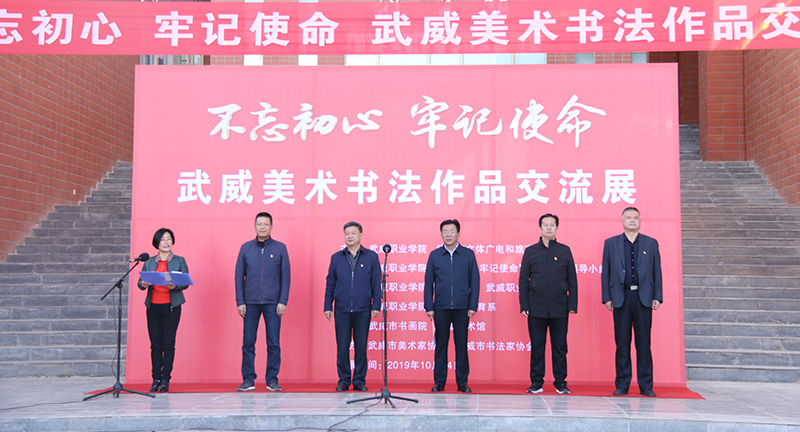 為深入開展“不忘初心牢記使命”主題教育,10月14日下午,武威職業(yè)學院、武威市文體廣電和旅游局舉辦的“不忘初心、牢記使命”武威美術(shù)書法作品交流展在學院大學生活動中心前廣場隆重開幕。