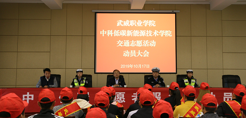 為進(jìn)一步助力全國文明城市創(chuàng)建,10月17日下午武威職業(yè)學(xué)院中科低碳新能源技術(shù)學(xué)院在行樹樓報告廳召開交通志愿活動動員大會。武威市涼州區(qū)公安局交警大隊副隊長趙國權(quán),宣傳中隊馬靜、明如霞;武威職業(yè)學(xué)院能源工程系黨總支書記黃文源,中科低碳新能源技術(shù)學(xué)院輔導(dǎo)員付江鵬及中科低碳新能源技術(shù)學(xué)院志愿者服務(wù)隊全體成員參加了此次會議。