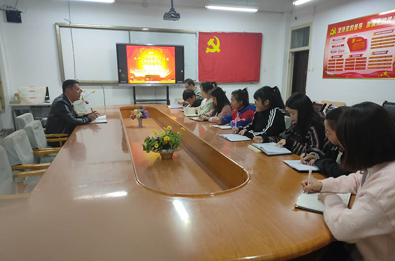 學(xué)生支部書(shū)記姚盈老師帶領(lǐng)全體黨員學(xué)生重溫學(xué)習(xí)習(xí)總書(shū)記在黨的十九大報(bào)告中提出的“不忘初心,牢記使命”,用黨的理論武裝頭腦,加強(qiáng)青年學(xué)生的理論素養(yǎng)。
