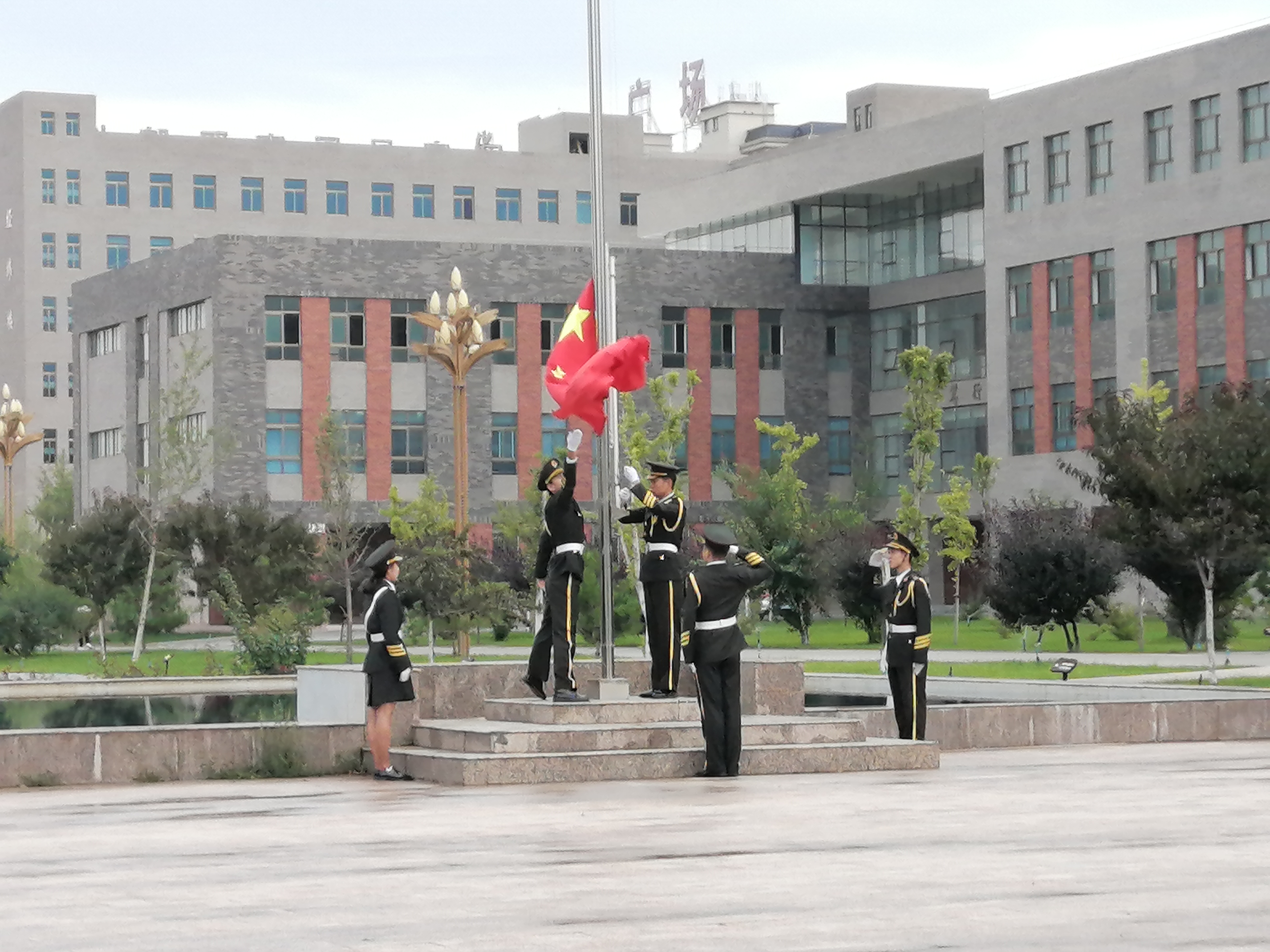 ?一切準(zhǔn)備就緒,由主持人唐鑫基老師宣布升旗儀式正式開始后,英姿颯爽的5名國旗隊旗手邁著矯健的步伐,護(hù)衛(wèi)著國旗走到廣場旗桿前,伴著莊嚴(yán)嘹亮的國歌,五星紅旗冉冉升起,全體師生懷著崇敬與喜悅的心情,凝視著迎風(fēng)飄揚(yáng)的五星紅旗,心中無比自豪。在場的每一個人向國旗行注目禮,深懷對祖國無限的熱愛和崇高的敬意。隨后,由學(xué)生代表陳雅麗在國旗下演講。