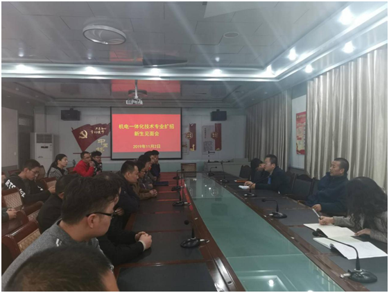 11月2日,機(jī)械制造系在博學(xué)樓黨員活動(dòng)室組織召開(kāi)了2019機(jī)電一體化技術(shù)專(zhuān)業(yè)擴(kuò)招新生見(jiàn)面會(huì)。黨總支書(shū)記梁忠,班主任徐寶,任課教師以及全體新生參加了會(huì)議。