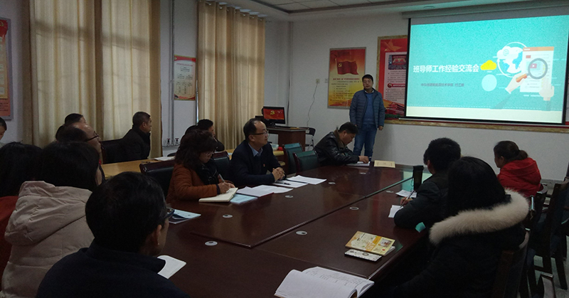 接著,付江鵬老師通過精心制作的PPT與在座的老師們分享了中科低碳新能源技術(shù)學(xué)院班導(dǎo)師工作經(jīng)驗,付老師從我國班導(dǎo)師的淵源、導(dǎo)師制的核心內(nèi)容即“三學(xué)三導(dǎo)四航”、導(dǎo)師制類型及本人開展的思想引導(dǎo)、學(xué)業(yè)指導(dǎo)、生涯規(guī)劃、組隊競賽等班導(dǎo)師工作做了精彩交流,通過經(jīng)驗交流,大家對班導(dǎo)師工作有了更清晰的認識,也被付老師的工作精神所感動。