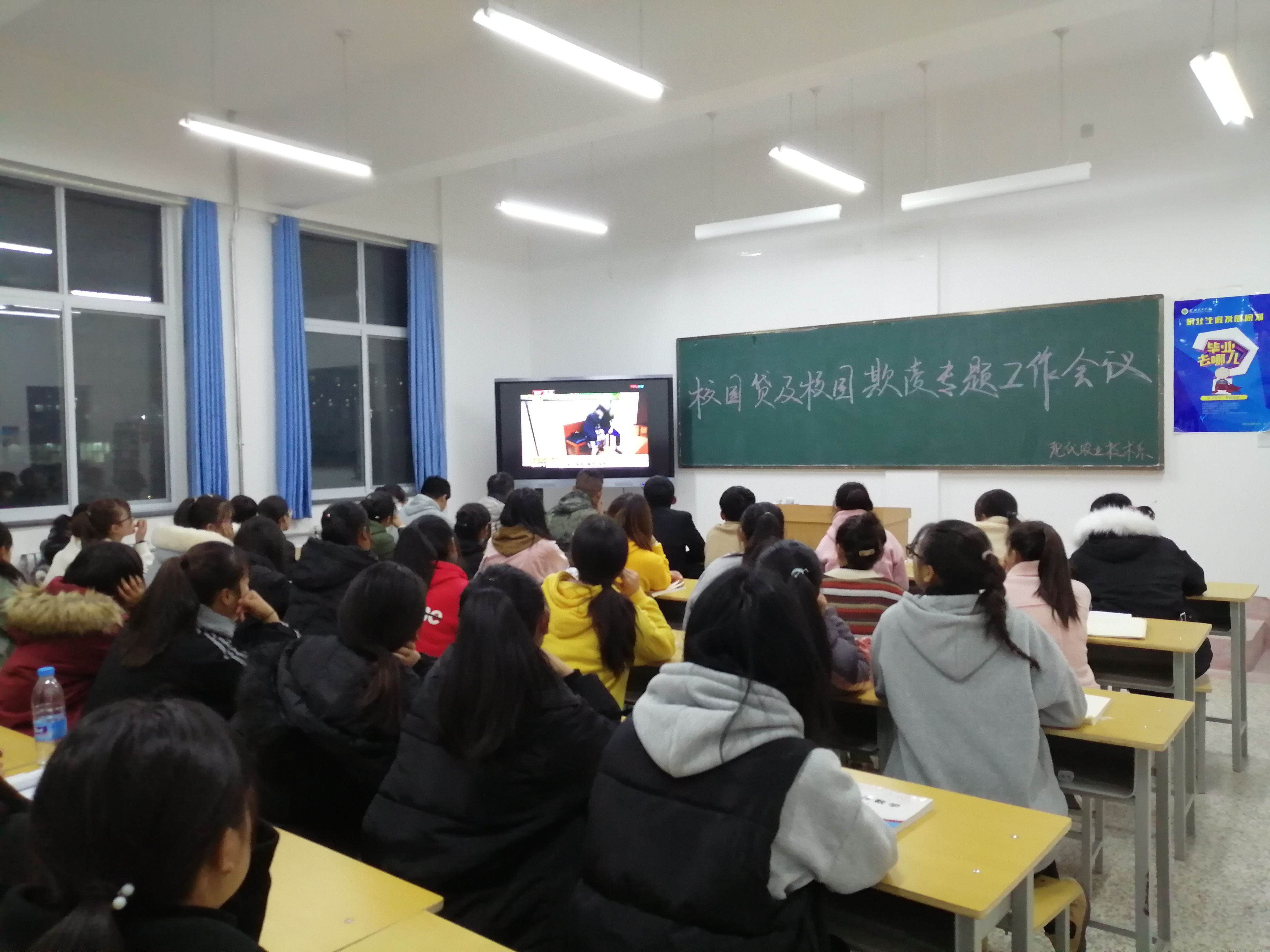 11月21日晚,現(xiàn)代農(nóng)業(yè)技術(shù)系在行樹樓教學(xué)區(qū)307教室開展“校園貸及校園欺凌”主題教育活動(dòng),全系大一學(xué)生參加了此次活動(dòng),活動(dòng)由系輔導(dǎo)員蔡海老師主持。