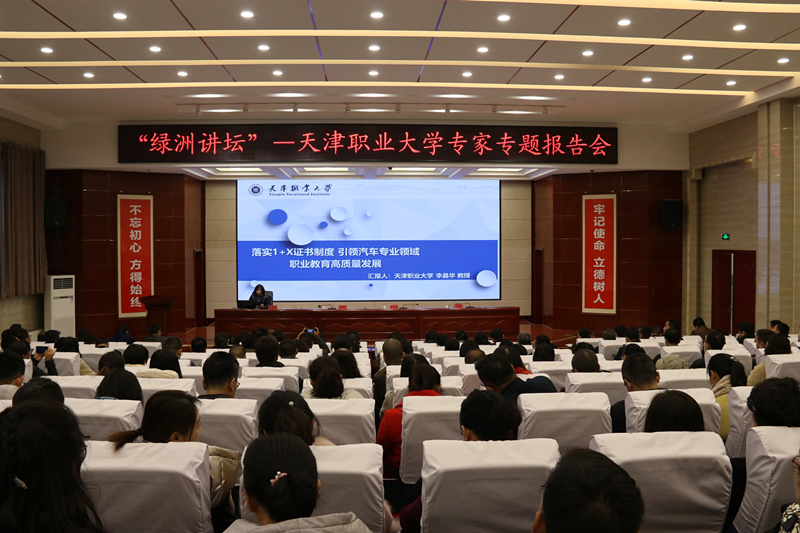 報告會上,天津職業(yè)大學副校長楊榮敏、天津職業(yè)大學合作教育辦公室王昆教授、天津職業(yè)大學汽車工程學院院長、博士、汽車維修技師李晶華教授分別做了題為《魯班工坊——中國職業(yè)教育國際知名品牌》《產(chǎn)業(yè)學院融入思政元素路徑與實踐》《落實1+X證書制度,引領汽車專業(yè)領域職業(yè)教育高質(zhì)量發(fā)展》的報告。學院領導和副科級以上中層管理干部、各系教研室主任、骨干教師、青年教師代表參加報告會。