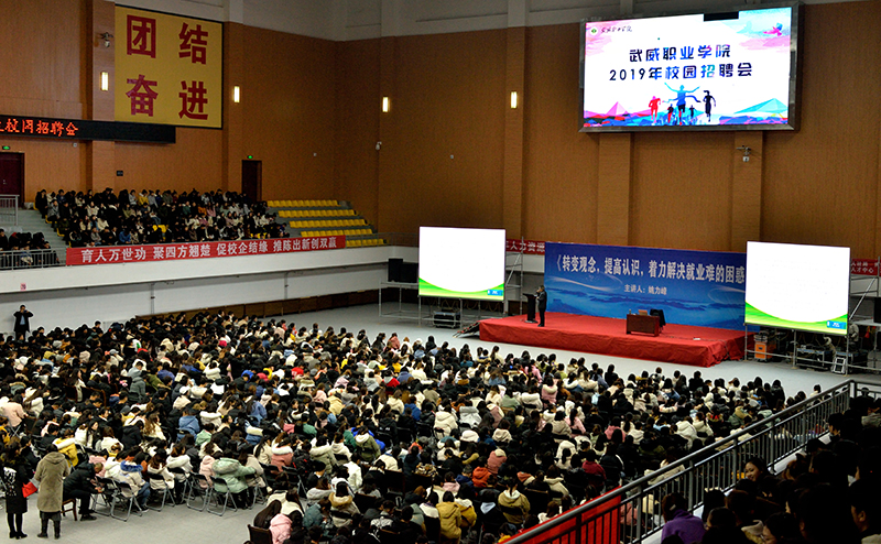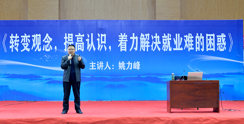 為貫徹2020屆全國普通高校畢業(yè)生就業(yè)創(chuàng)業(yè)工作網(wǎng)絡(luò)視頻會議精神,學(xué)院以習(xí)近平新時(shí)代中國特色社會主義思想為指導(dǎo),深入落實(shí)黨中央、國務(wù)院關(guān)于促進(jìn)高校畢業(yè)生就業(yè)創(chuàng)業(yè)的一系列重大決策部署,把畢業(yè)生就業(yè)工作擺在最突出位置,確保畢業(yè)生就業(yè)大局穩(wěn)定。12月14日上午,學(xué)院組織2020屆畢業(yè)生,在體育館參加了題為《轉(zhuǎn)變觀念,提高認(rèn)識,著力解決就業(yè)難得困惑》的專家講座,引導(dǎo)畢業(yè)生轉(zhuǎn)變觀念、積極就業(yè)。講座由省人社廳人力資源市場檔案管理部部長姚力峰主講,招生就業(yè)處副處長董鵬主持。