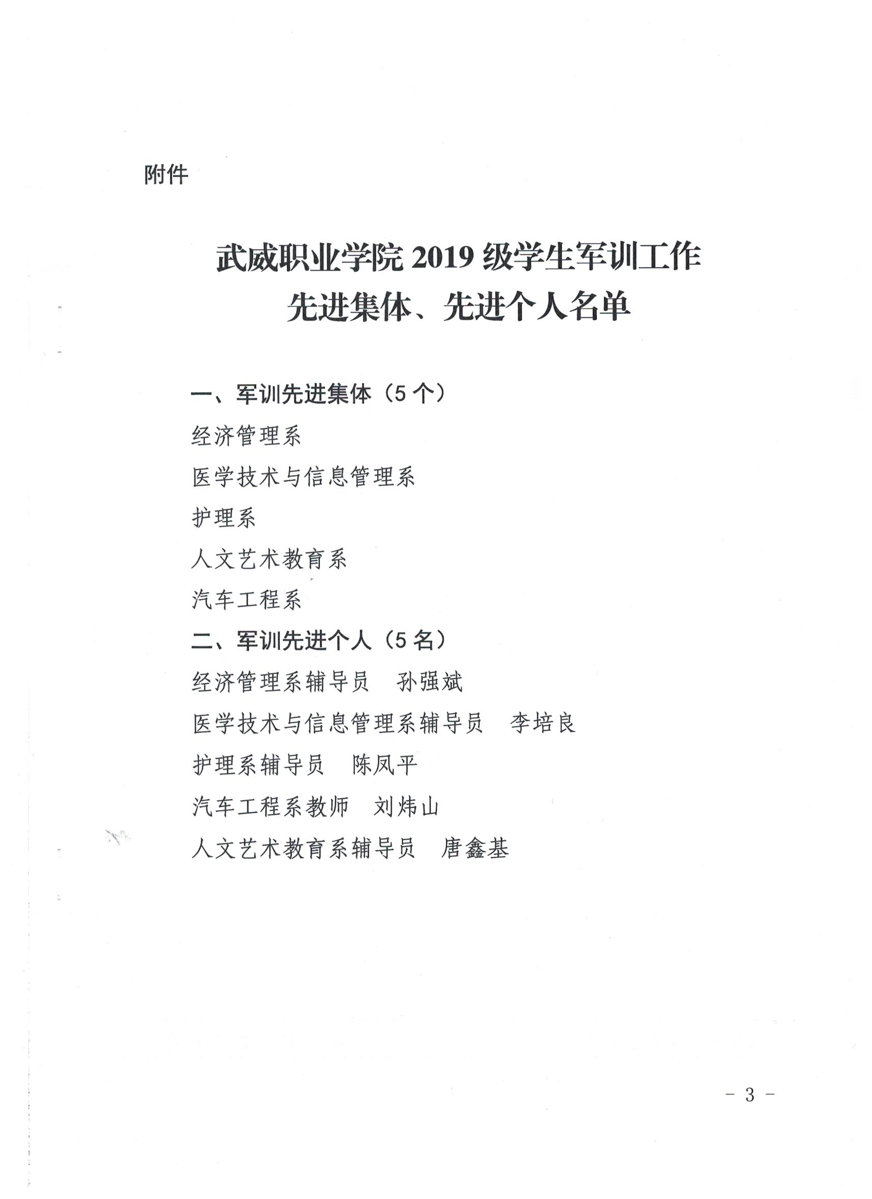 武威職業(yè)學院關于表彰2019級學生軍訓工作軍訓標兵的決定