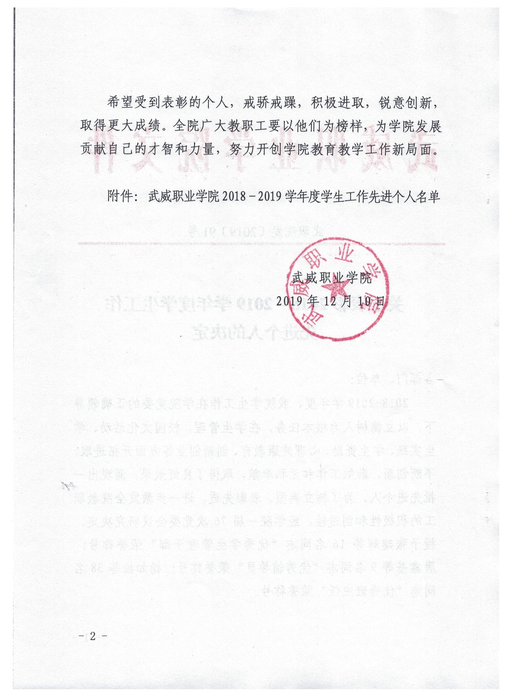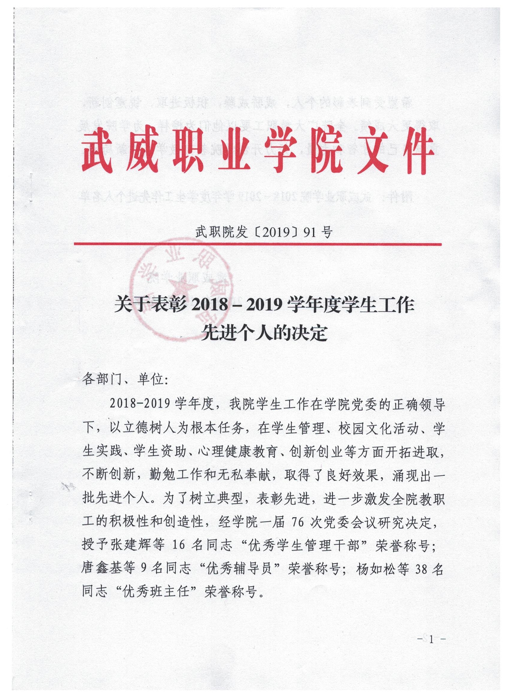 關(guān)于表彰2018-2019學(xué)年度學(xué)生工作先進個人的決定