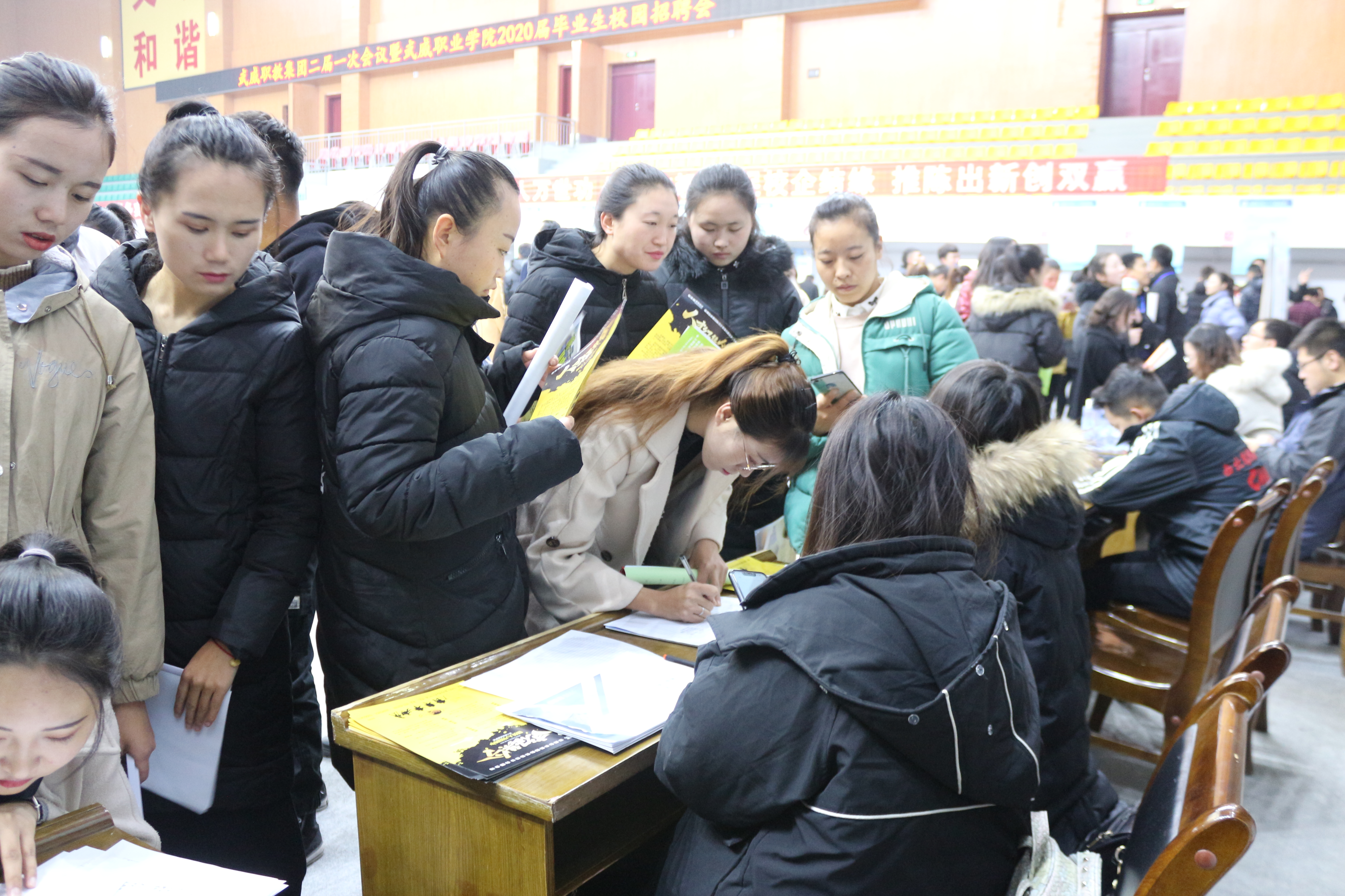 12月13日,在學(xué)院體育館舉辦了武威職業(yè)學(xué)院2020屆畢業(yè)生校園招聘會(huì),電子信息工程系2020屆219名畢業(yè)生參加了此次校園招聘會(huì),同時(shí)2018級(jí)同學(xué)到現(xiàn)場進(jìn)行了觀摩學(xué)習(xí),此次招聘會(huì),有118家企業(yè)到場參會(huì),參加招聘的企業(yè)涵蓋教育培訓(xùn)、機(jī)械機(jī)電、能源化工、藝術(shù)設(shè)計(jì)、建筑房地產(chǎn)、商品貿(mào)易、金融證券、信息技術(shù)、文化服務(wù)等類別,共計(jì)提供崗位2100多個(gè)。畢業(yè)生們手持簡歷和就業(yè)三方協(xié)議穿梭于各招聘展位與招聘單位交流,招聘單位不遺余力向畢業(yè)生們積極推介。經(jīng)初步統(tǒng)計(jì),我系畢業(yè)生此次招聘會(huì)達(dá)成了就業(yè)意向150多名,有98人在招聘會(huì)現(xiàn)場簽訂了就業(yè)三方協(xié)議。?