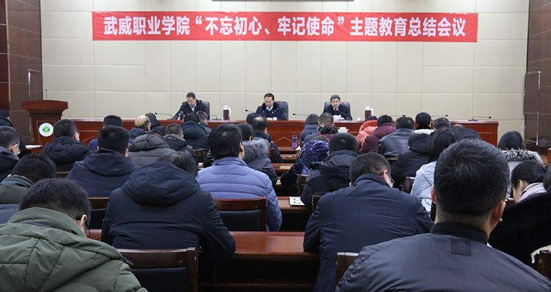 根據(jù)省委“不忘初心、牢記使命”主題教育領(lǐng)導(dǎo)小組統(tǒng)一部署和安排,1月14日下午,武威職業(yè)學(xué)院“不忘初心、牢記使命”主題教育總結(jié)會議在行樹樓報告廳舉行。會議深入學(xué)習(xí)了習(xí)近平總書記在“不忘初心、牢記使命”主題教育總結(jié)大會上的重要講話精神,回顧了學(xué)院主題教育的推進過程,總結(jié)成效和經(jīng)驗,動員廣大黨員干部把初心和使命轉(zhuǎn)化為擔(dān)當作為、干事創(chuàng)業(yè)的實際行動,推動學(xué)院各項工作取得新業(yè)績。