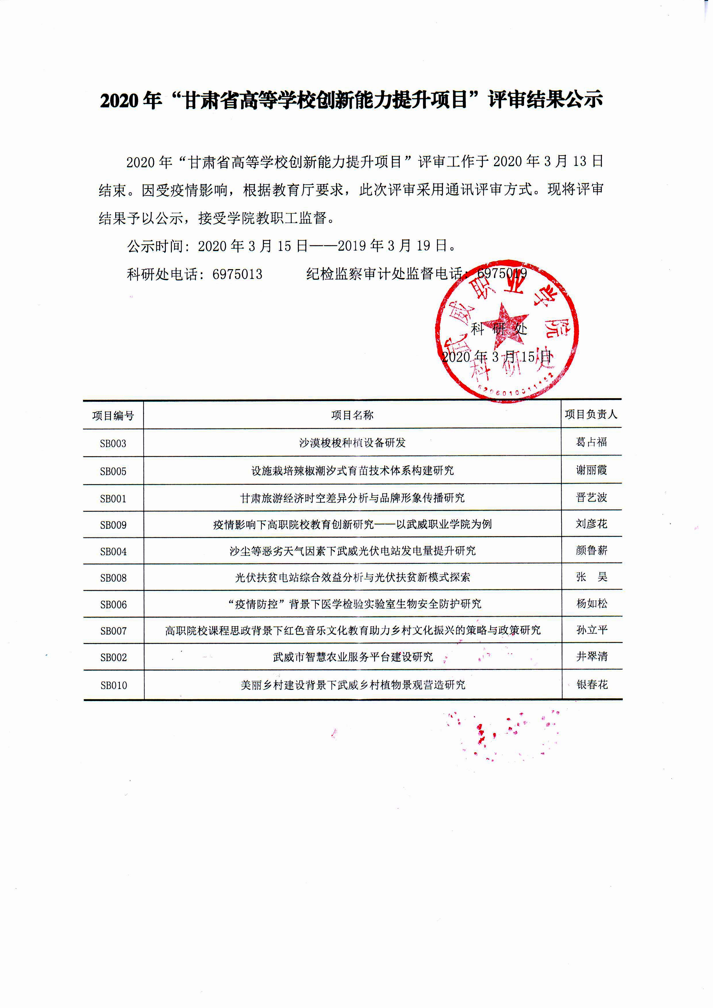 2020年高校創(chuàng)新能力提升項(xiàng)目立項(xiàng)評審公示