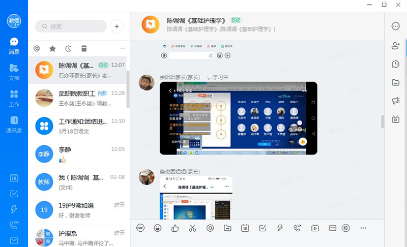 護理系教師陳調(diào)調(diào)利用釘釘群組織學(xué)生在線交流