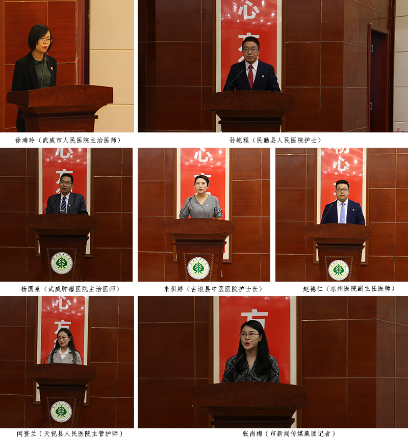 宣講報(bào)告團(tuán)成員由6位援鄂優(yōu)秀隊(duì)員代表和市新聞傳媒集團(tuán)的1位記者組成。宣講會(huì)上,武威市人民醫(yī)院主治醫(yī)師徐海玲、民勤縣人民醫(yī)院護(hù)士孫屹程、武威腫瘤醫(yī)院主治醫(yī)師楊國(guó)泉、古浪縣中醫(yī)醫(yī)院護(hù)士長(zhǎng)來(lái)積婷、涼州醫(yī)院副主任醫(yī)師趙德仁、天??h人民醫(yī)院主管護(hù)師閆登蘭,市新聞傳媒集團(tuán)記者張尚梅,用自己的親身經(jīng)歷和樸實(shí)生動(dòng)的語(yǔ)言,從主動(dòng)請(qǐng)戰(zhàn)、逆行出征、克服困難、參與救治、關(guān)愛患者、勝利歸來(lái)等多個(gè)方面,滿懷深情地講述了他們?cè)谥г逼陂g的難忘瞬間與暖心經(jīng)歷。他們用實(shí)際行動(dòng)譜寫了一曲感天動(dòng)地的英雄贊歌,生動(dòng)詮釋了新時(shí)代武威精神,是武威人民的優(yōu)秀兒女,是當(dāng)之無(wú)愧的“白衣戰(zhàn)士”、“最美逆行者”和“新時(shí)代最可愛的人”。會(huì)場(chǎng)不時(shí)響起如雷的掌聲。武威援鄂醫(yī)療隊(duì)全體成員以強(qiáng)烈的使命感和責(zé)任感,堅(jiān)持奮戰(zhàn)在抗擊疫情的最前沿,展現(xiàn)了崇高的使命擔(dān)當(dāng),樹立了新時(shí)代的典型榜樣。
