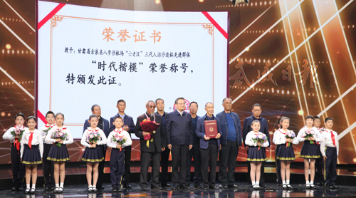 中宣部授予古浪縣八步沙林場“六老漢”三代人 治沙造林先進群體“時代楷?!狈Q號