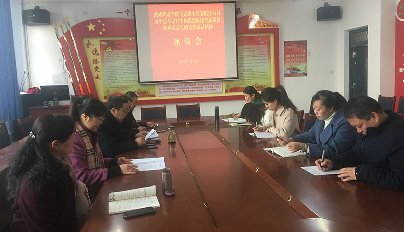 為了深入學習貫徹習近平總書記在在學校思想政治理論課教師座談會上的講話精神,3月20日下午,武威職業(yè)學院馬克思主義學院召開思政教師座談會,專題學習習近平總書記在學校思想政治理論課教師座談會上的重要講話精神,深入交流學習總書記講話精神的心得體會。會議由馬克思主義學院副院長胡靜峰主持。