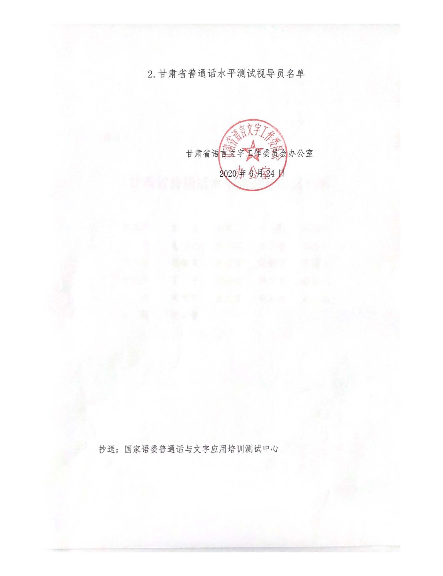 6月24日,我院護理系教師趙穎教授獲得甘肅省普通話水平測試復審員資格。根據(jù)《甘肅省語言文字工作委員會辦公室關于聘任甘肅省普通話水平測試視導員和復審員的通知》評選條件,學院組織推薦趙穎老師為“甘肅省普通話水平測試復審員”。經(jīng)甘肅省語言文字工作委員會評審,趙穎老師獲得甘肅省普通話水平測試復審員”資格,這是我院語言文字工作方面產(chǎn)生的第一位“省級測試復審員”。