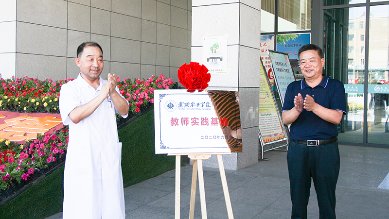 雙方負責人簽訂了《教師醫(yī)院實踐協議書》,共同為學院醫(yī)學類專業(yè)雙師型教師實踐基地揭牌。