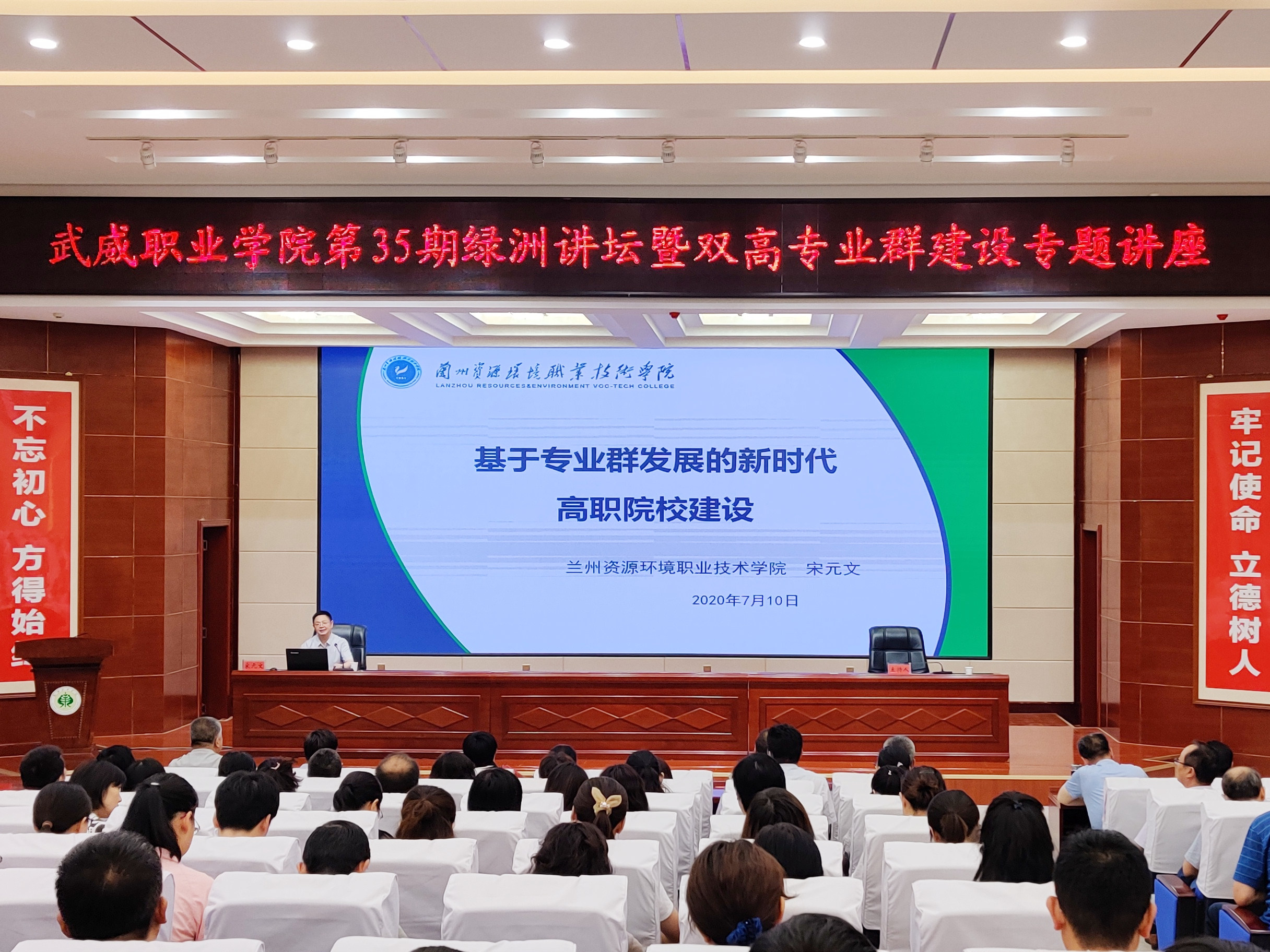 7月11日上午,學(xué)院在大學(xué)生活動(dòng)中心菁英廳舉辦第35期綠洲講壇暨雙高專業(yè)群建設(shè)專題講座。學(xué)院黨委書記、院長(zhǎng)趙明主持報(bào)告會(huì),黨委副書記翟存祥,黨委委員、副院長(zhǎng)田迎春、何毅、張開(kāi)禮、王守云,武威職教集團(tuán)成員單位代表,學(xué)院各部門和教學(xué)院系負(fù)責(zé)人、專業(yè)負(fù)責(zé)人和教師代表共計(jì)200余人參加了報(bào)告會(huì)。圖為蘭州資源環(huán)境職業(yè)技術(shù)學(xué)院黨委委員、副院長(zhǎng)宋元文教授作“基于專業(yè)群發(fā)展的新時(shí)代高職院校建設(shè)”專題報(bào)告。