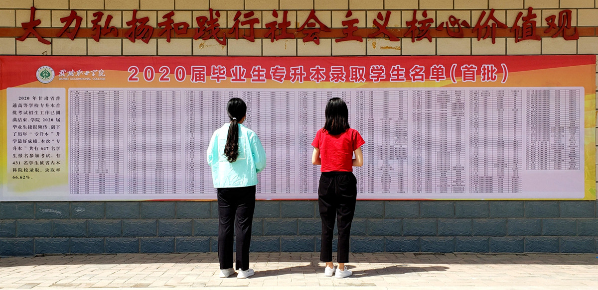 2020年甘肅省普通高等學校專升本第一批、第二批考試招生工作已圓滿結(jié)束。我院2020屆畢業(yè)生捷報頻傳,創(chuàng)下了歷年“專升本”升學的最好成績。726名學生報名參加考試,有529名學生被省內(nèi)本科院校錄取,錄取率為72.87%。