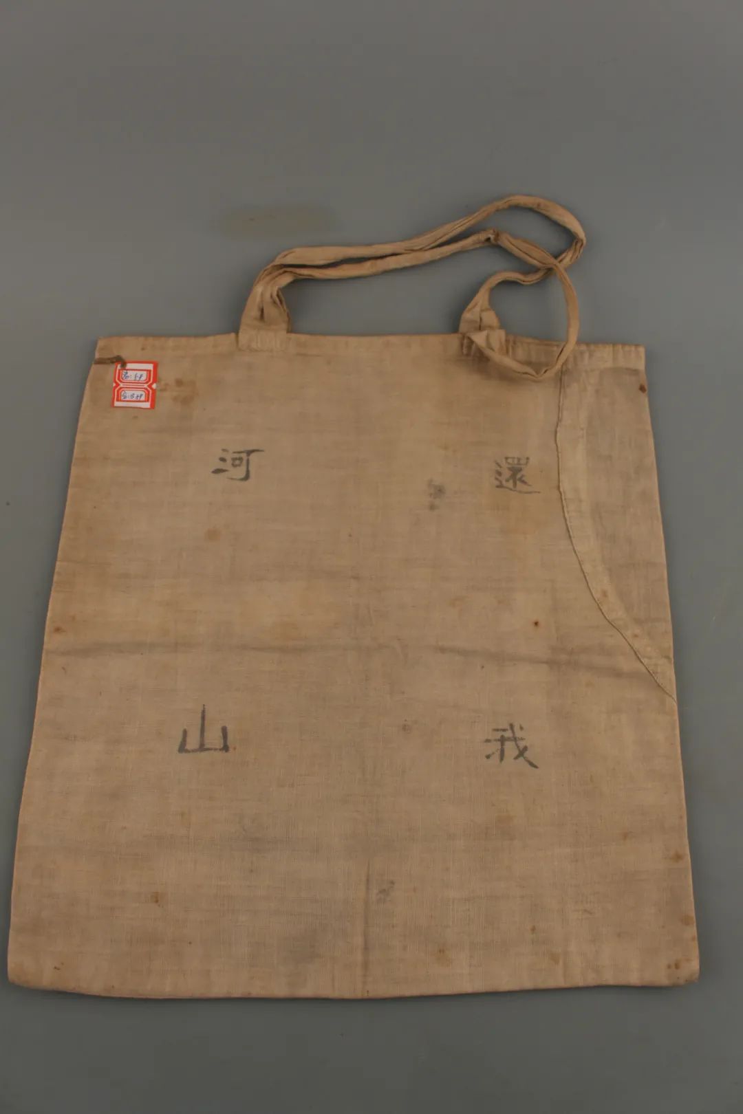 “還我河山”,車向忱夫婦用過(guò)的手提兜上,四個(gè)字依然清晰?!熬乓话恕笔伦兒螅瑬|北淪陷,教育家車向忱多次往返關(guān)內(nèi)外,積極組織抗日救亡運(yùn)動(dòng),還創(chuàng)辦了許多平民學(xué)校。這個(gè)手提兜原為白色,歷經(jīng)歲月和戰(zhàn)火,現(xiàn)已陳舊發(fā)黃。布兜正面繡有黑色“收復(fù)東北失地,1938”字樣,背面寫有“還我河山”字樣。