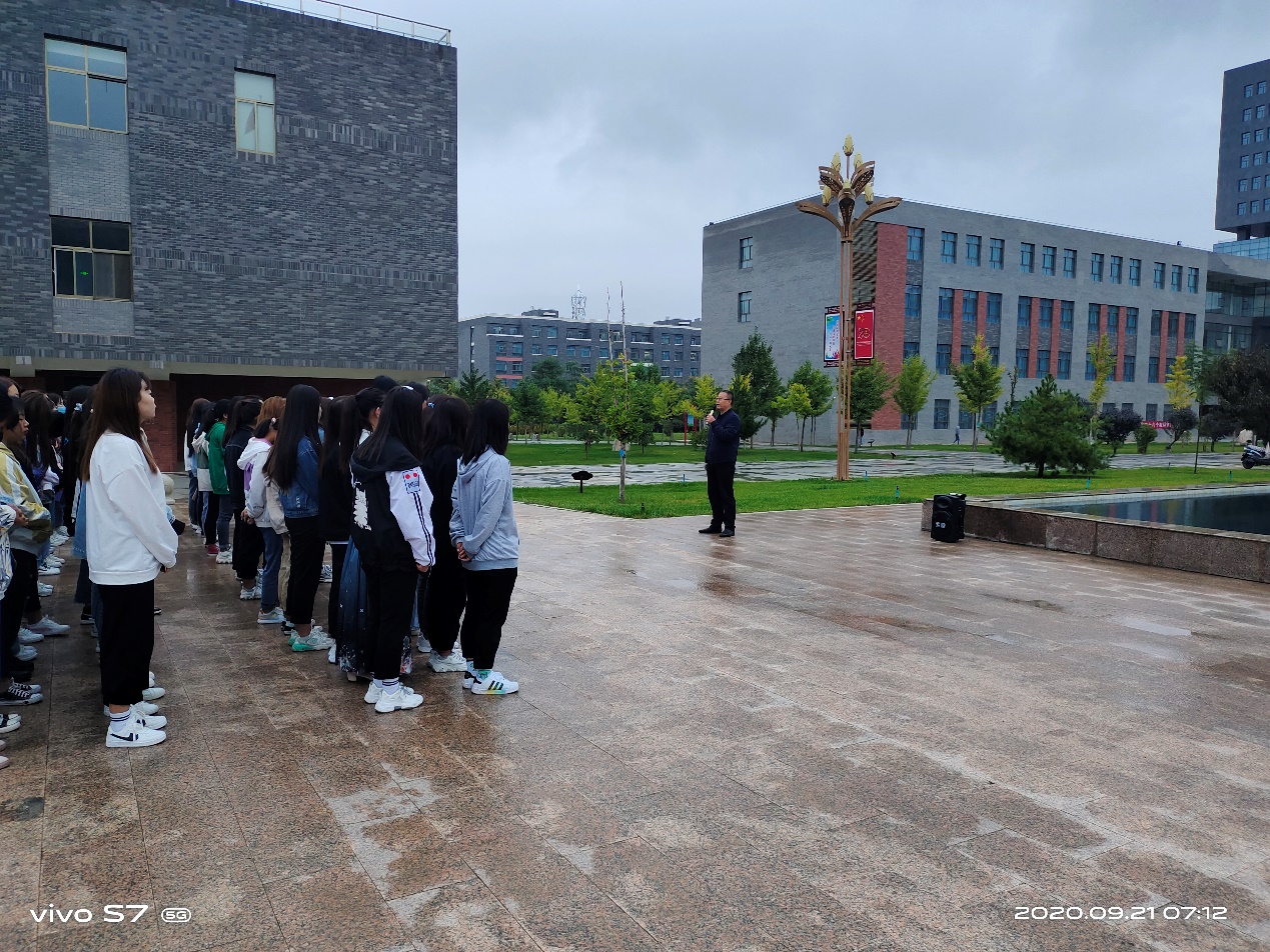 最后,魏潤(rùn)明以“秋冬季節(jié),加強(qiáng)疫情防護(hù)”為題做了講話。他要求全體師生:一、嚴(yán)格日常管理。提醒學(xué)生早起以增強(qiáng)身體素質(zhì)、健康體魄,要重視自身健康素養(yǎng)和自我防護(hù)能力。二、嚴(yán)格執(zhí)行請(qǐng)銷(xiāo)假制度。各班主任對(duì)請(qǐng)假學(xué)生,須認(rèn)真核實(shí)情況,各班同學(xué)應(yīng)嚴(yán)格執(zhí)行請(qǐng)銷(xiāo)假制度。同時(shí),他告誡2018級(jí)學(xué)生,抓住有利時(shí)機(jī),提前做好“專(zhuān)升本”復(fù)習(xí)工作,為圓滿完成2021屆畢業(yè)生就業(yè)工作,做好準(zhǔn)備。