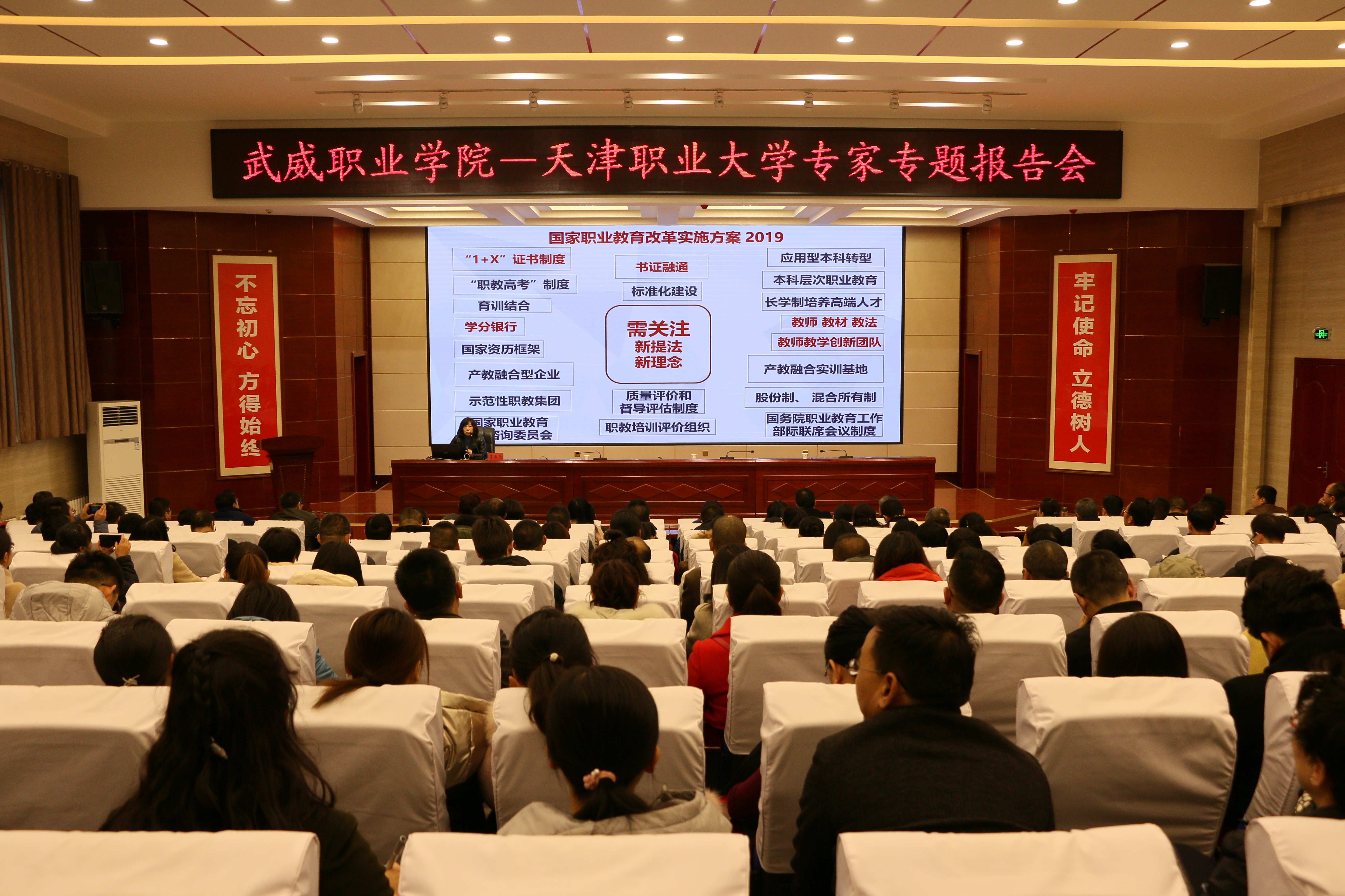 11月20日,武威職業(yè)學(xué)院“綠洲講壇”第27期在學(xué)院菁英廳舉行,本期活動邀請到天津職業(yè)大學(xué)汽車學(xué)院院長李晶華作主題為“《國家職業(yè)教育改革實(shí)施方案》解讀”的報告。學(xué)院領(lǐng)導(dǎo)班子、中層干部、教師代表220余人參加了報告會。本期講壇由學(xué)院黨委書記、院長趙明主持。