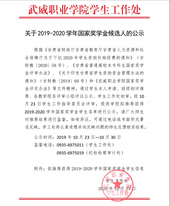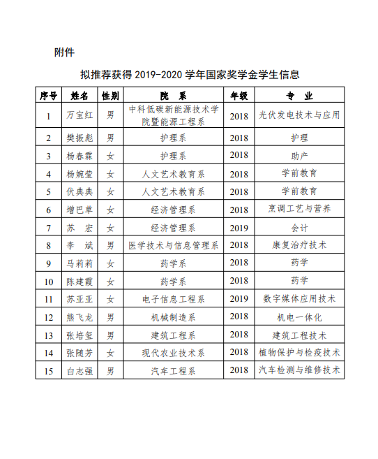 關(guān)于2019-2020學(xué)年國(guó)家獎(jiǎng)學(xué)金候選人的公示