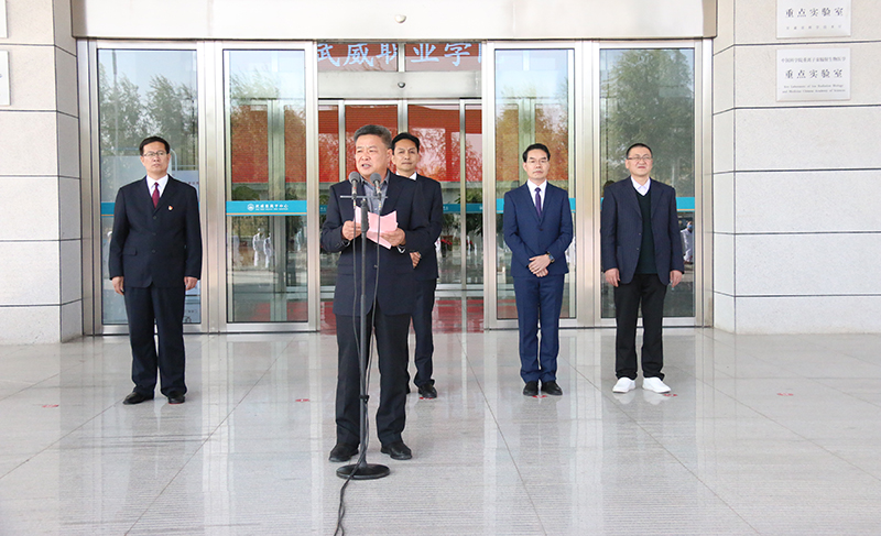 揭牌儀式上,趙明介紹學(xué)院教育教學(xué)改革發(fā)展所取得的成效,強(qiáng)調(diào)職業(yè)教育和普通教育是兩種不同的教育類型,具有同等重要地位,全面落實(shí)《國(guó)家職業(yè)教育改革實(shí)施方案》和“技能甘肅”部署要求,推動(dòng)學(xué)院“雙高”建設(shè),爭(zhēng)創(chuàng)高職應(yīng)用型本科院校,離不開(kāi)高水平的合作醫(yī)院,離不開(kāi)高水平的師資隊(duì)伍。教師實(shí)踐基地的揭牌成立,將會(huì)進(jìn)一步加強(qiáng)雙方的合作交流,實(shí)現(xiàn)資源共享、優(yōu)勢(shì)互補(bǔ)、共同發(fā)展,我們要積極探索和創(chuàng)新基地育人方式,使之成為“雙師型”教師培養(yǎng)的搖籃。