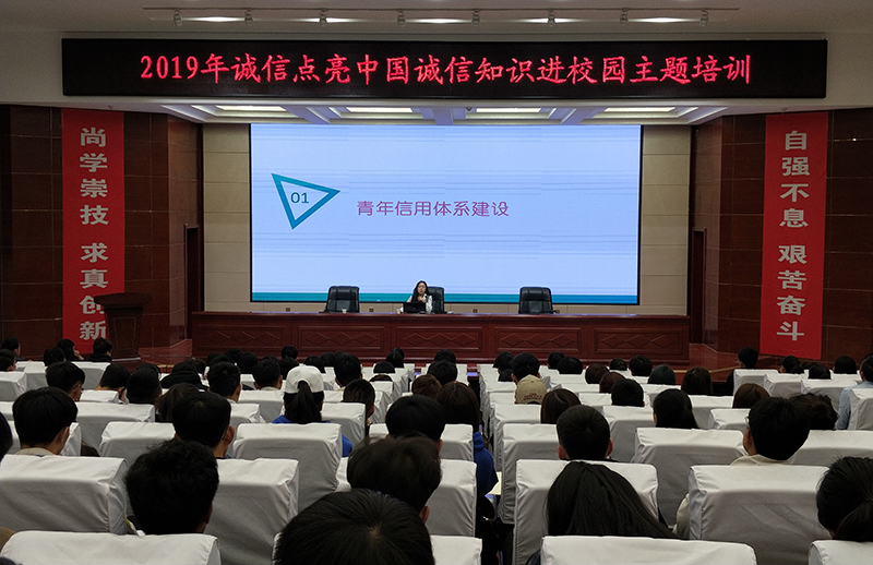 為進(jìn)一步拓寬誠信知識(shí)宣傳的深度和廣度,提升我院青年學(xué)生的誠信意識(shí),增強(qiáng)同學(xué)們信用理念和防范重大風(fēng)險(xiǎn)的意識(shí), 3月30日上午,2019年“誠信點(diǎn)亮中國”誠信知識(shí)進(jìn)校園活動(dòng)在菁英廳舉辦,團(tuán)省委青年信用體系建設(shè)領(lǐng)導(dǎo)小組辦公室主任高振葉作了《青年信用體系建設(shè)與志愿中國》主題講座,團(tuán)市委少工委副主任許娜出席活動(dòng),院團(tuán)委教師和220學(xué)生代表參加了培訓(xùn)。