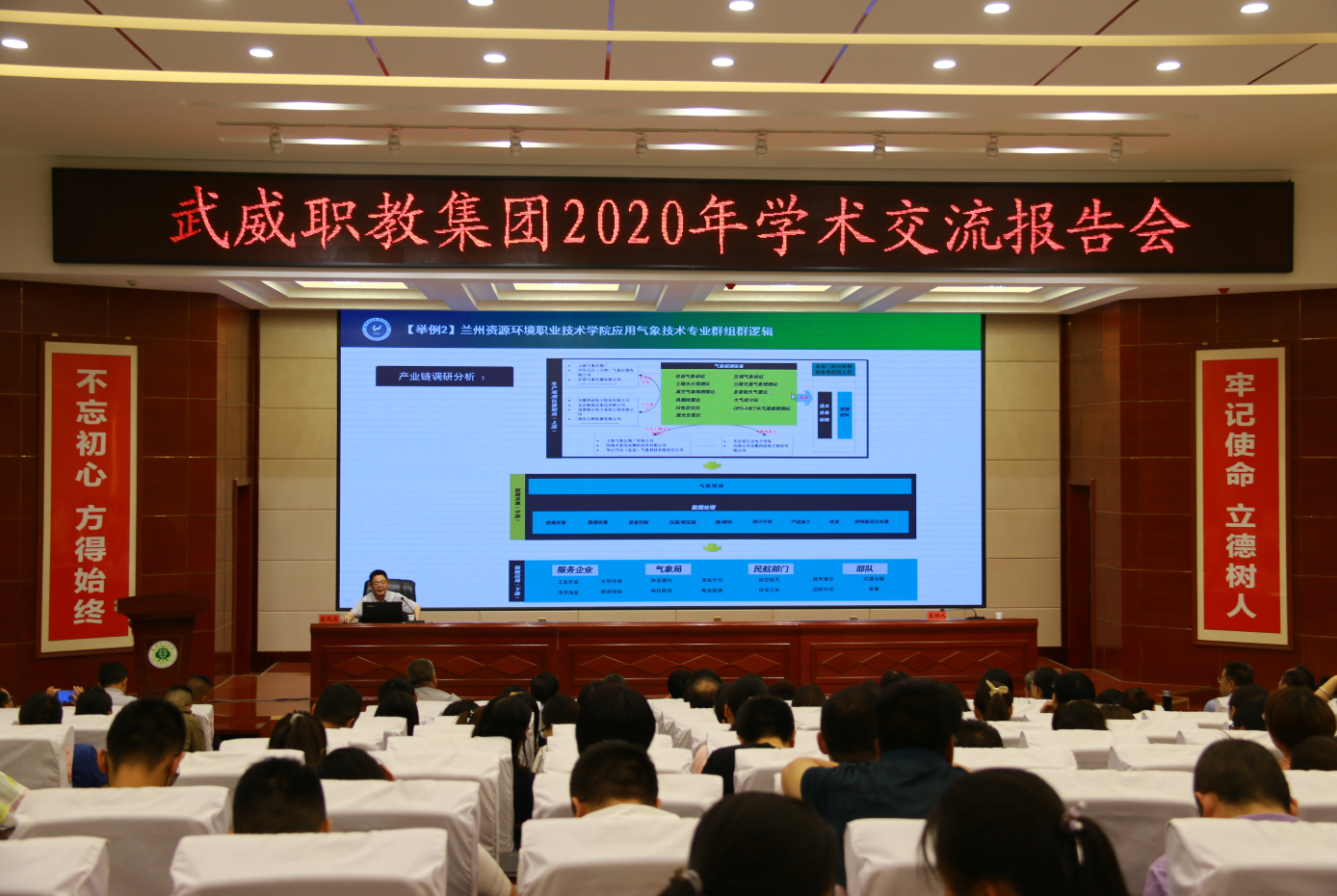 7月11日上午,學院在大學生活動中心菁英廳舉辦“第35期綠洲講壇暨雙高專業(yè)群建設(shè)專題講座”,邀請到蘭州資源環(huán)境職業(yè)技術(shù)學院黨委委員、副院長宋元文教授作“基于專業(yè)群發(fā)展的新時代高職院校建設(shè)”的專題報告。學院黨委書記、院長趙明主持報告會,黨委副書記翟存祥,黨委委員、副院長田迎春、何毅、張開禮、王守云,武威職教集團成員單位代表,學院各部門和教學院系負責人、專業(yè)負責人和教師代表共計200余人參加了報告會。