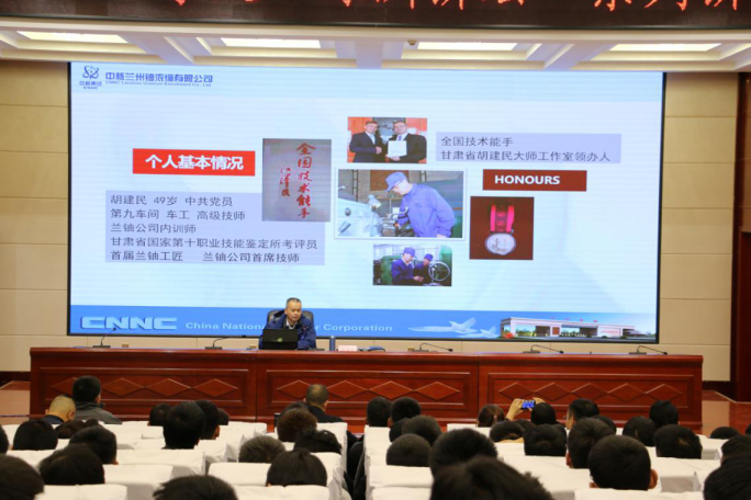 最后,翟存祥教授為胡建民頒發(fā)聘書,特聘請(qǐng)胡建民為武威職業(yè)學(xué)院人才培養(yǎng)技能大師。翟存祥指出,校企合作,相互支持,共同發(fā)展是校企互贏的發(fā)展模式。中科低碳新能源技術(shù)學(xué)院同中科院和蘭鈾公司合作,為同學(xué)們提供了優(yōu)質(zhì)教育資源、更高更好的發(fā)展平臺(tái),技藝精湛的教師團(tuán)隊(duì)。希望同學(xué)們珍惜機(jī)遇,學(xué)習(xí)胡大師學(xué)習(xí)中嚴(yán)謹(jǐn)?shù)闹螌W(xué)態(tài)度,實(shí)踐中“斤斤計(jì)較”、精益求精的工匠精神,生活中敞開胸懷的人生態(tài)度,成長(zhǎng)為優(yōu)秀技能人才。