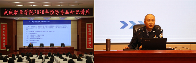 為進一步加強學院毒品預防教育工作,不斷提高學生識毒、防毒、拒毒意識,2020年11月6日下午,學院團委邀請武威市公安局禁毒支隊政委、市禁毒辦副主任杜興林在菁英廳作了題為“健康人生 綠色無毒”預防毒品專題知識講座,師生代表共200余人聆聽講座。
