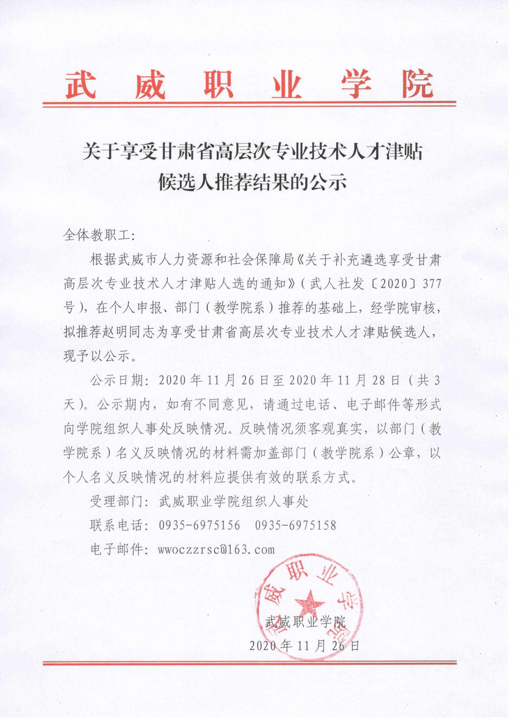 關(guān)于享受甘肅省高層次專業(yè)技術(shù)人才津貼 候選人推薦結(jié)果的公示