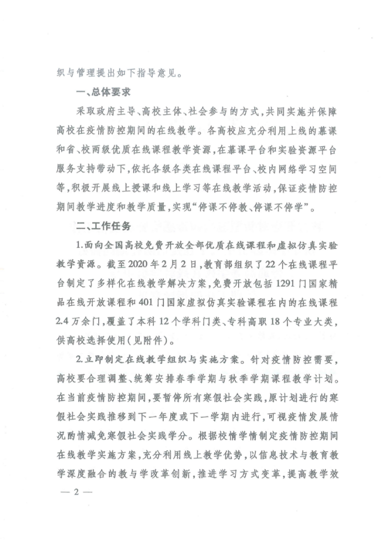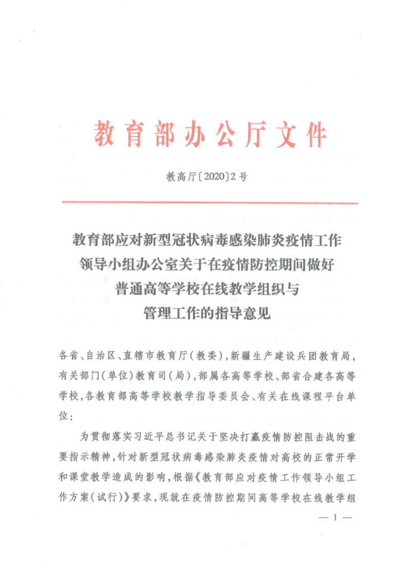 教育部做好普通高等學校在線教學組織與管理工作的指導(dǎo)意見
