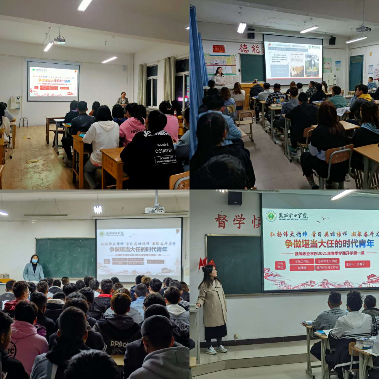 授課圍繞“弘揚(yáng)脫貧攻堅(jiān)精神,激發(fā)建功強(qiáng)大動(dòng)力”、“學(xué)習(xí)戍邊英雄事跡,匯聚強(qiáng)國(guó)磅礴力量”、“遵守國(guó)家規(guī)定要求,筑牢疫情防控防線”和“牢固樹(shù)立安全意識(shí),切實(shí)維護(hù)校園安全”四個(gè)方面展開(kāi),授課教師和同學(xué)們一起全面分享了脫貧攻堅(jiān)取得的偉大成就和衛(wèi)國(guó)戍邊英雄的感人事跡,并對(duì)常態(tài)化疫情防控工作和學(xué)校安全工作做了細(xì)致講解。旨在激勵(lì)廣大學(xué)生弘揚(yáng)脫貧攻堅(jiān)精神,厚植愛(ài)國(guó)戰(zhàn)斗情懷,并使同學(xué)們更好地適應(yīng)學(xué)校學(xué)習(xí)生活,遵守常態(tài)化疫情防控制度和學(xué)院各項(xiàng)規(guī)章制度,以保證新學(xué)期教育教學(xué)工作平穩(wěn)有序開(kāi)展,保證全院長(zhǎng)期安全穩(wěn)定。